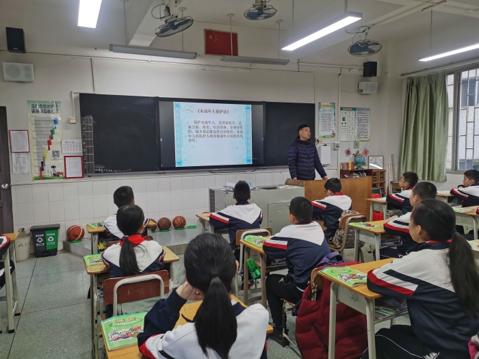 打印 |为了提高师生的法制意识,培养学生知法、懂法、辨法,帮助学生依法保护自己,依法尽自己的义务,争做遵纪守法的好公民。古镇镇海洲第一小学于3月22日上午开展了“学法懂法,健康成长”的法制安全教育主题班会。