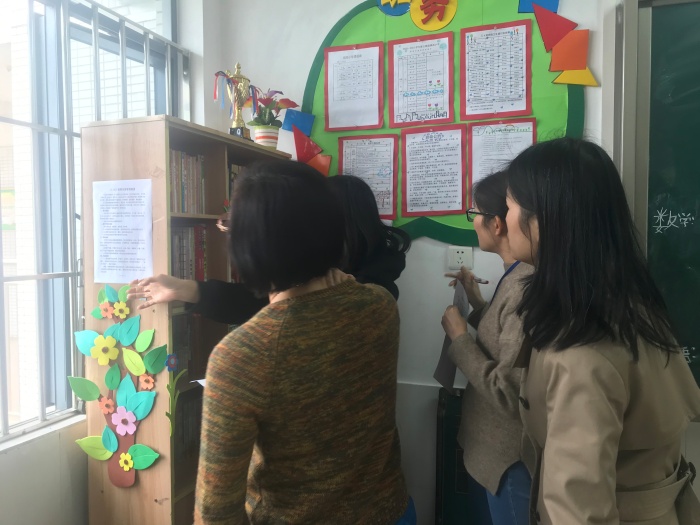 此次评比,评委老师们从整体设计、藏书数量、书籍种类、管理制度、班级环境五个方面入手,对各班图书角进行了量化打分,评选镇南小学的“最美图书角”。走近各班的图书角,只见各类图书整齐划一地排列在干净的书柜上,各种小巧精致的“图书角标识”“图书借阅制度”和醒目的“读书口号”等标语,让孩子们的阅读更有秩序。密密麻麻的借阅登记,充分展现了孩子们的勤奋乐读,还有那生机勃勃的小绿植点缀其中,让评委老师们不禁啧啧称赞,或惊叹于图书角的奇思妙想,或沉浸于图书角的简约大方,或沉醉于图书角的藏书丰富,或流连于图书角的文韵墨香。每一间教室,都让人感受到浓浓的书香气息,每个班的图书角设计各具特色,不但凝聚师生们无穷的智慧,也彰显着孩子们阅读的足迹。评委老师对待检查评比的态度非常认真,按照评分标准进行详细的打分,评选出各级奖励。