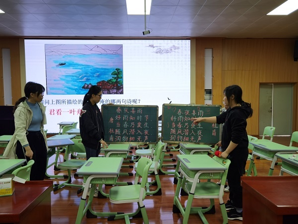 会议伊始,曹二小学语文科组长邓佩雅老师安排了本周工作。首先,邓老师详细介绍了本周五将要举行的图书捐赠活动,为提前做好准备,需要各班语文教师在星期五前将捐赠的图书架组装好并布置好班级的图书角,并即时确定了六个班级在捐赠活动结束后由担当者行动的志愿者进行主题分享。随后,全体与会教师通过了本学期的读书节活动方案,并提醒各位教师,本周将进行征文比赛、个人诗词朗诵比赛及班级握笔姿势比赛。各年级需做好读书节活动的准备,如征文稿纸的印刷、诗词朗诵的培训、握笔姿势的练习、监考人员的安排等。最后,邵华老师、蔡晓娜老师、范欣彤老师现场进行了素养比赛的模拟训练。三位老师依次完成了下水文的撰写、五分钟完成一板粉笔字、知识竞赛的答题。