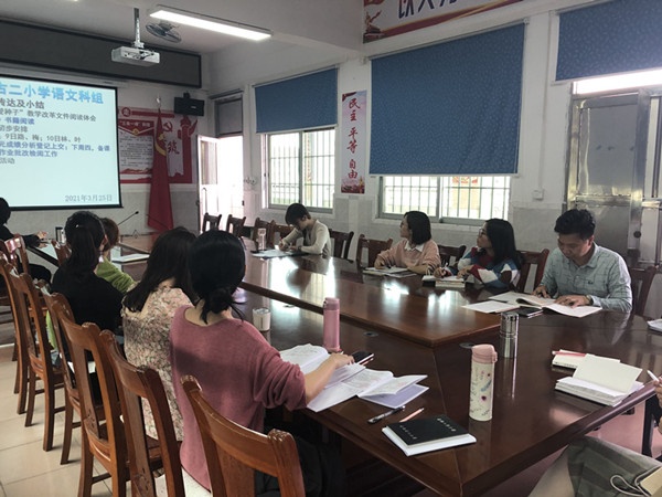 黄老师对此次会议精心准备,向各位教师传达上级文件并进行小结,分别是陈主任关于“爱种子”教学改革文件阅读体会;《语文讲习录》书籍阅读;名思教研活动初步安排以及“朝阳读书活动”等,并敦促各位语文教师认真备课,做好作业批改检阅工作,分析单元成绩并上交教导处。