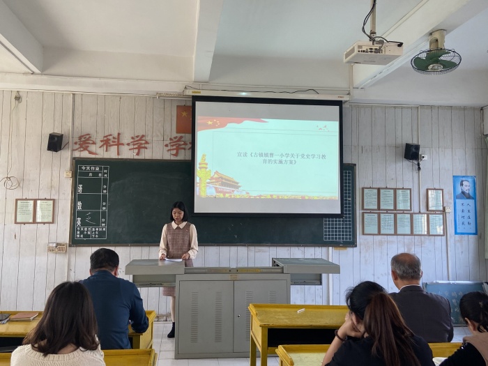会议伊始,副校长陈美方宣读了《古镇镇曹一小学关于党史学习教育的实施方案》,她从指导思想、学习内容、工作安排、组织领导四大方面进行了详细宣读。她强调,要深刻铭记中国共产党百年奋斗的光辉历程。进一步感悟思想伟力,增强用党的创新理论武装全党的政治自觉。深刻认识中国共产党为国家和民族作出的伟大贡献。以思想引领发展,营造良好发展环境,推动学校各项重点工作再上新台阶。