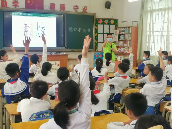 黄国坚医生通过科普小视频、多媒体播放PPT课件、结合口头讲解等方式重点对认识结核病、结核病健康教育宣传核心知识、结核病的危害及如何防治结核病等方面进行了深入浅出的讲解。讲座最后是有奖回答环节,同学们通过踊跃参加有奖回答问题,更加准确牢固的掌握了结核病防治知识。
