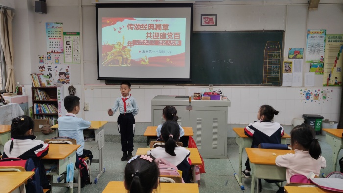 同学们都非常积极踊跃参与本次活动,在语文老师布置演讲任务后,他们认真查阅党史资料与英雄故事,并利用课余时间勤奋练习故事演讲。演讲活动在各个班级开展得如火如荼,演讲的同学激情洋溢地讲述着革命英雄的故事,同学们听得津津有味,教室里不时传来阵阵掌声。最后,由班级语文老师和同学们共同推选一位同学参加3月27日由中山市阅读促进会和中山市求索书苑联合海洲第一小学举办的故事演讲展示活动。