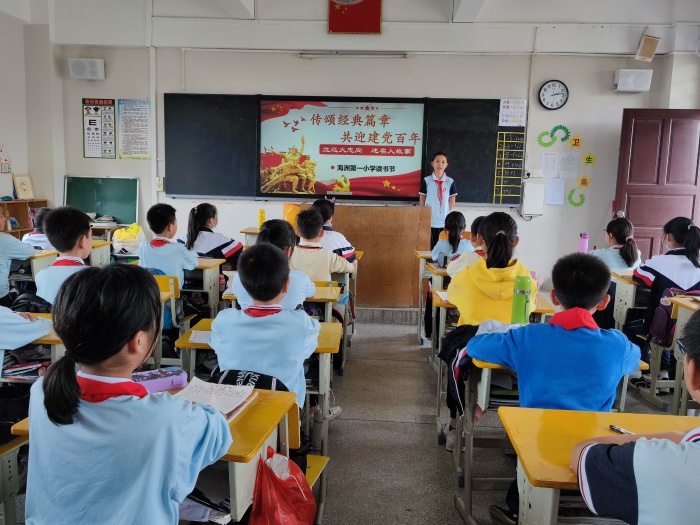 打印 |2021年是中国共产党建立的第100年,为庆祝建党100周年,培养学生爱读书,乐读书,会读书的习惯,营造“书香校园”、“书香家庭”、“书香社会”的氛围。海洲第一小学于3月22至3月28日开展“讲革命故事,树远大志向”故事演讲活动。