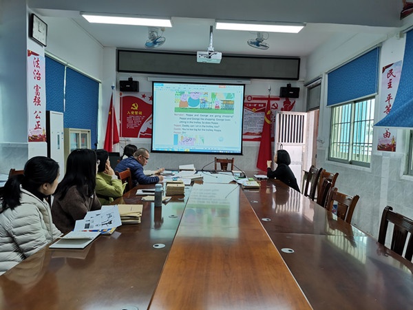 本次会议由英语科组长黄少娴老师主持。首先,黄少娴老师传达了镇本学期的教研计划。接着,黄老师提出本学期的一些工作设想:1、抓好教学常规,提高教学效率。2、老师们要加强学习,珍惜外出学习的机会,提升教学水平。3、老师们应积极参加市镇组织的一些比赛,如青年教师比赛、论文评比等,提高自己的业务水平和教研能力。4、老师们可利用科组活动时间进行经验交流,学习别人在教学中的一些做法,运用到自己的课堂中。5、讨论本学期开展的一些英语兴趣活动。6、明确一、二年级的英语教学大纲,给任教低年级英语的老师指明方向。