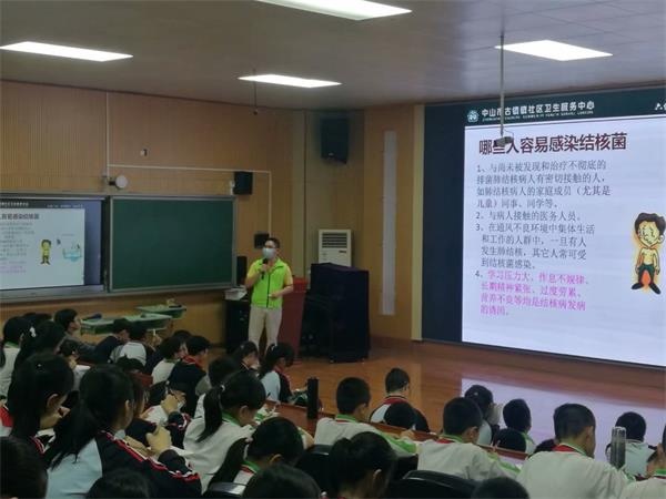 为了让学生了解结核病的传染途径和预防方法,养成良好的卫生习惯,2021年3月26日,社区服务中心的志愿医生为曹二小学六年级学生上了一堂“预防肺结核”的知识宣讲课。