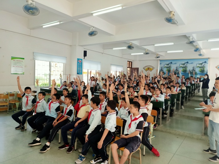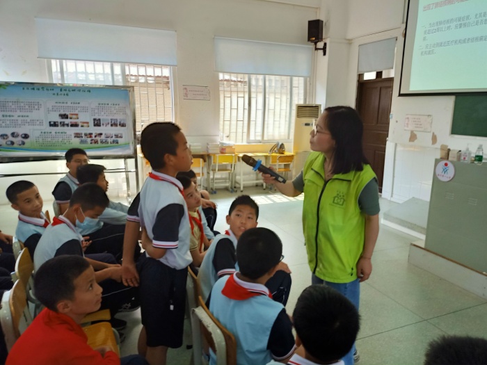 李医师在讲授的同时,不时与学生进行互动答题。互动答题激发了学生们的热情,学生们踊跃举手回答,现场气氛热烈。在欢快的氛围中,让师生们更清楚地认识到结核病的传播途径、治疗方式及预防方法。