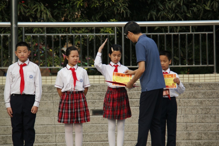 打印 |春天随着落花走了,夏天迈着轻快的脚步过来了。在这春夏交替的时光里,镇南小学第五届科技节终于圆满落幕。在这历时将近一个月的时间里,涌现出了很多创意满满又亮点多多的作品,为了表彰在这届科技节中表现优秀的班级和个人,2021年3月29日上午,镇南小学举行了升旗仪式暨第五届校园科技节闭幕式。