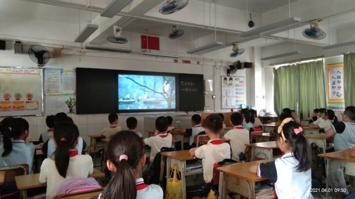 海洲第一小学积极利用一切公共宣传资源,积极向教师、家长、学生推荐党史党建影视作品,并在班级内适时播放彰显中国共产党光辉岁月历程的一系列爱国影片,积极引导全校师生进行党史学习,激发浓浓的爱国情怀!