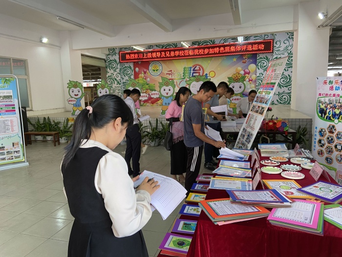 评选活动分为特色展示、申报陈述及答辩三个环节。首先是评审成员到各个学校特色班的展示区进行特色班资料审核、评分。各个特色班展示区都进行了一番精心的布置,尽可能突出了“创造优良学风、打造特色班级”的主题,并且资料充足,美观大方,让人目不暇接。