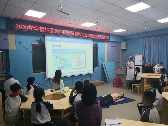 2020年11月17日下午,横栏镇三沙小学举行了中医健康宣教进校园暨心肺复苏培训活动,来自横栏医院中医康复科的宁平华主任和谢医生主持了培训,三沙小学全体行政、校医、四年级至六年级的全体班主任和部分学生参加了活动。