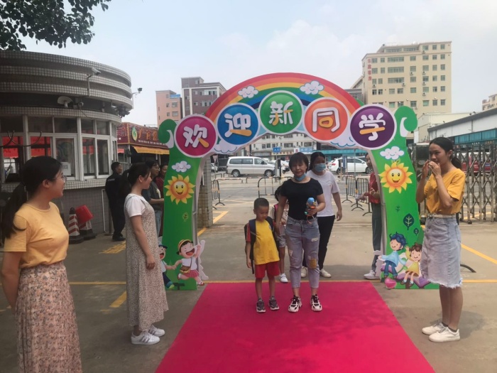 当天下午,一年级的新生在家长的带领下,高高兴兴地来到校园,按照学校的规划先走红地毯进校园,然后签到、找教室、找座位,此时孩子们脸上露出了初入校园的好奇和兴奋的笑容。随后,家长们带小孩到二楼班级签到,并扫描二维码加入班级微信群。