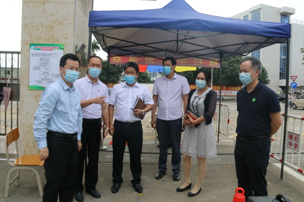 4月29日上午,中山市委常委、宣传部部长林锐熙在市教育和体育局人事科科长雷泽洪的陪同下莅临横栏中学检查指导学生返校复学工作。