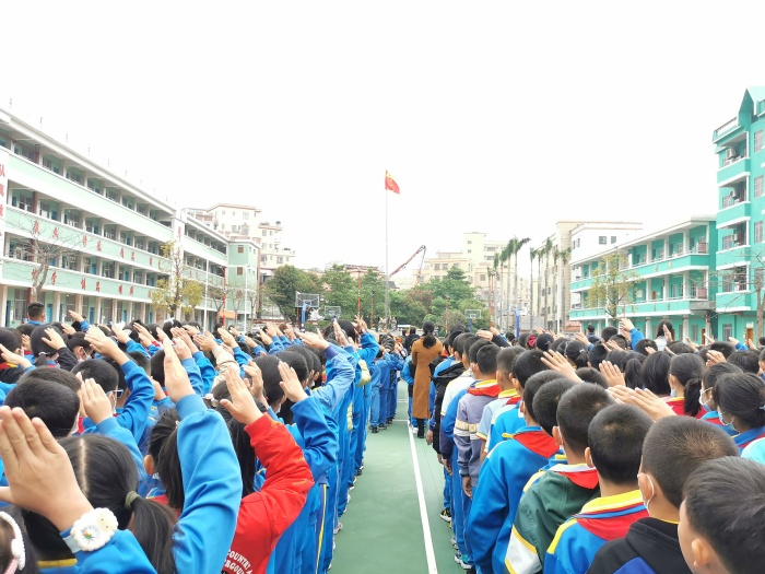 春风微凉,师生热情却不曾退却。8点30分,在雄壮的进行曲中,国旗护卫队队员们迈着矫健的步伐走向旗台,和着嘹亮的歌声,激昂的青春美丽绽放;伴着灿烂的笑容,鲜艳的五星红旗迎风飘扬。