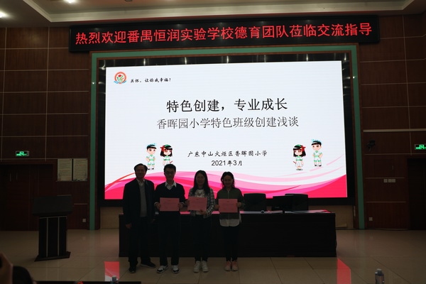 最后,番禺恒润学校廖校长发言。廖校长对香晖园小学的教育理念、校本课程、特色班级文化建设等方面工作表示高度赞赏,并鼓励恒润学校的班主任们在学习、借鉴的基础上勇于创新,创建出属于恒润文化的特色班级。