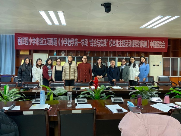 12月16日上午,香晖园小学的市级课题《小学数学第一学段“综合与实践”校本化主题活动的实践研究》在四楼会议室举行中期汇报活动。中山市教师发展中心教育发展研究部副教授赵龙山、开发区教育事务指导中心谢柏祥老师、香晖园小学教导处副主任李端生及课题组全体成员参加了活动。