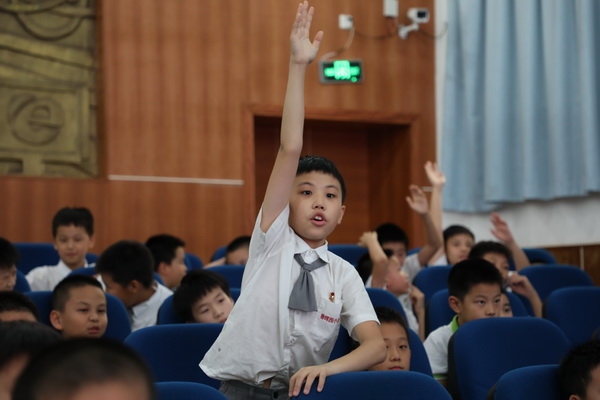 活动由学校大队辅导员杜沁源老师主持。杜老师首先介绍了此次活动流程,并对领导嘉宾的到来表示热烈欢迎。随后,刘荣娟检察官为同学们作了题为《法律是什么》的主题讲座,她从法律的词源和词义、法律的特征、法律思维的养成三方面详细讲解,从“法”字的繁体字说起,分析“法”字的结构,用讲故事的形式,生动地向孩子们介绍了何为法律。会上,刘检察官循循善诱,用小故事引发学生思考,通过一个个问题引导学生逐步分析,并和在场同学们热情互动。孩子们积极回答,踊跃发言。刘检察官耐心引导,认真倾听回应,还深情讲述了自己在检察官岗位上,面对未成年犯罪人员时的痛心和无奈。