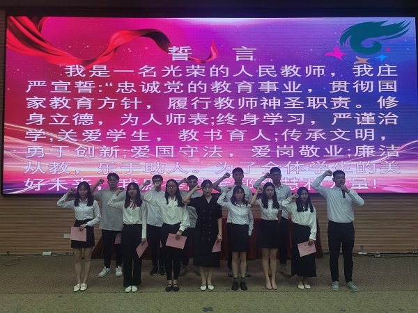 培训活动上,赖金虎老师作为新教师代表带领全体新入职教师进行了师德宣誓,庄严承诺:忠诚党的教育事业,贯彻国家教育方针,履行教师神圣职责。修身立德,为人师表;终身学习,严谨治学,关爱学生,教书育人;传承文明,勇于创新;爱国守法,爱岗敬业;廉洁从教,乐于助人,为了全体学生的美好未来,贡献自己的全部智慧和力量。