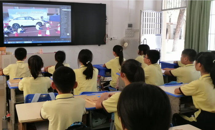 9点,全体师生在课室观看广东省教育厅开展的“看不见的危险”交通安全第一课直播。直播课程围绕“知危险、会避险”“被看见、才安全”等交通知识,通过现场演示、趣味实验、亲身体验的形式,展示了汽车盲区到底有多大,一盔一带、安全常在,“被看见才安全”等内容,有效提高学生的交通安全意识和自我保护能力。