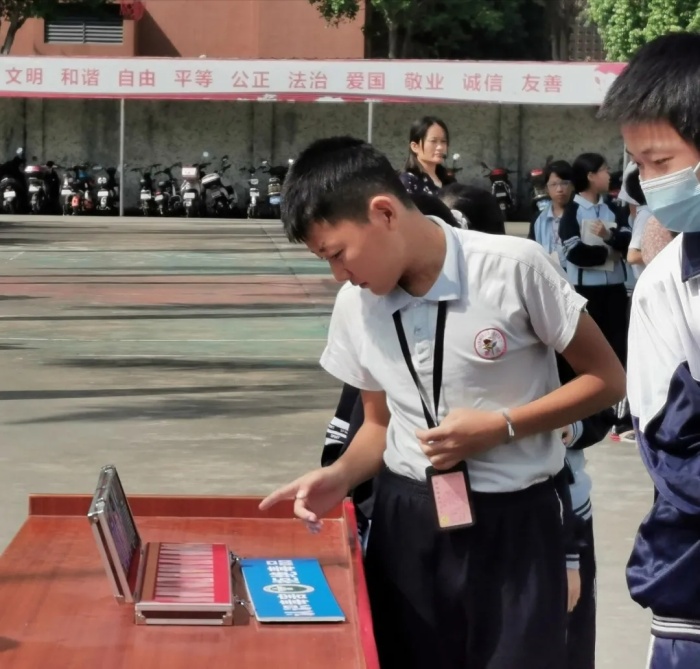 随后梁警官向师生发放禁毒宣传手册,并进行毒品实物展示,让师生更好的辨别毒品,进而远离毒品。