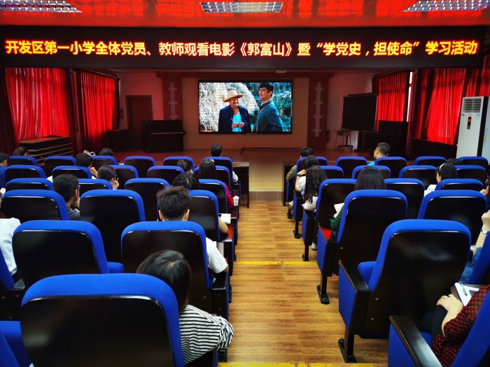 最后,全体教职工在学校电教室观看了优秀电影《郭富山》,一双满是创伤的手正诠释着守初心、担使命的真善美,一山一树富天下。