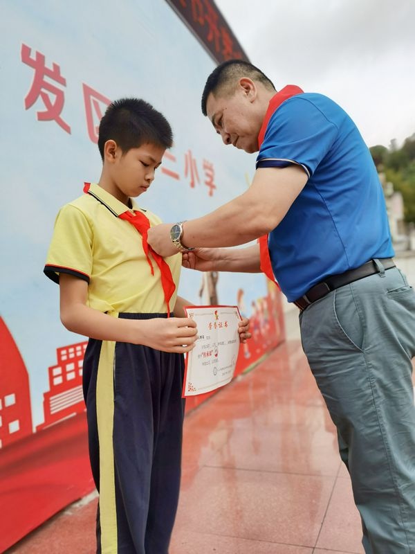 仪式上,三小党支部书记、少工委主任刘光旗校长对队员们提出了殷切希望:希望辅导员积极开展丰富多彩的红领巾争章活动。争章的过程就是挑战自我的过程,队员们在争章的活动过程中,不仅学会了一种技能,一种方法,提高了各种能力,更重要的是增加了一份自信。希望每位队员积极参加有意义且有意思的争章活动,在广阔舞台中增长才干、锻炼能力,争做新时代好少年。现场刘校长还为获得中山市“传承章“的队员进行了颁章。
