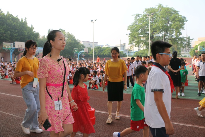 在彭海文老师和曾海强老师的带领下,全校学生整理队伍,整齐划一,精神抖擞,展示出对甫学子积极向上的精神面貌。