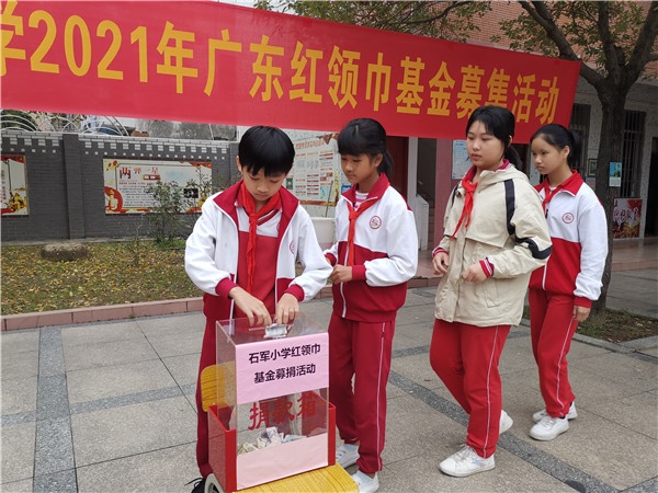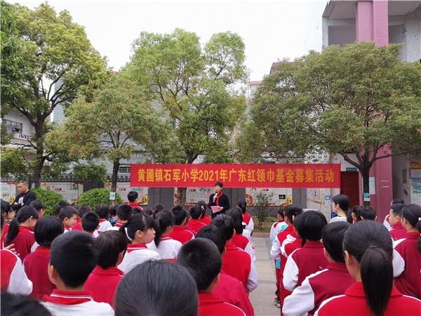 为了深入贯彻落实习近平总书记在广东的重要讲话精神,响应广东青基会的号召,积极参与2021年“广东红领巾基金募集”活动,为关爱贫困学生献出自己的一份微薄力量。2021年3月1日,春光明媚、鸟语花香,黄圃镇石军小学开展2021年广东红领巾基金募集活动。