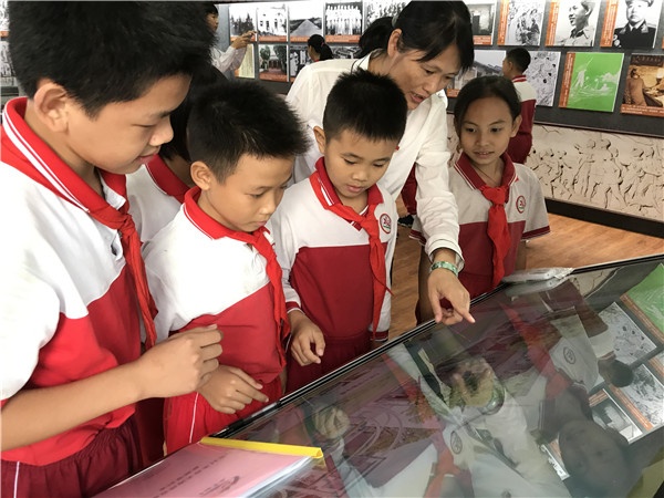 活动结束后,石军小学梁蔚菁校长和少先队大队辅导员梁毅强老师带领队员们怀着崇敬的心情参观了史迹展览室里展出的历史实物、珍贵照片和文献资料。这些定格的瞬间和实物,生动地再现了革命先辈和革命老区人民的光辉历史和英雄事迹。