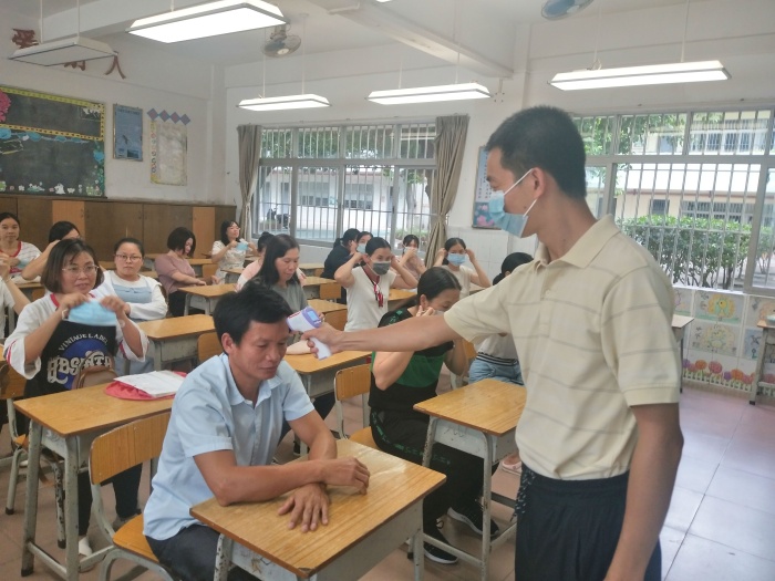演练现场,由于有了上学期的防疫演练经验及防疫工作实践,各位老师按照分工迅速行动、配合密切,高效地完成了四个部分的演练任务,了解开学后每一个场景的防控流程及要求,以及遇到突发事件该如何处理等。