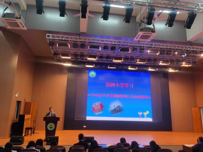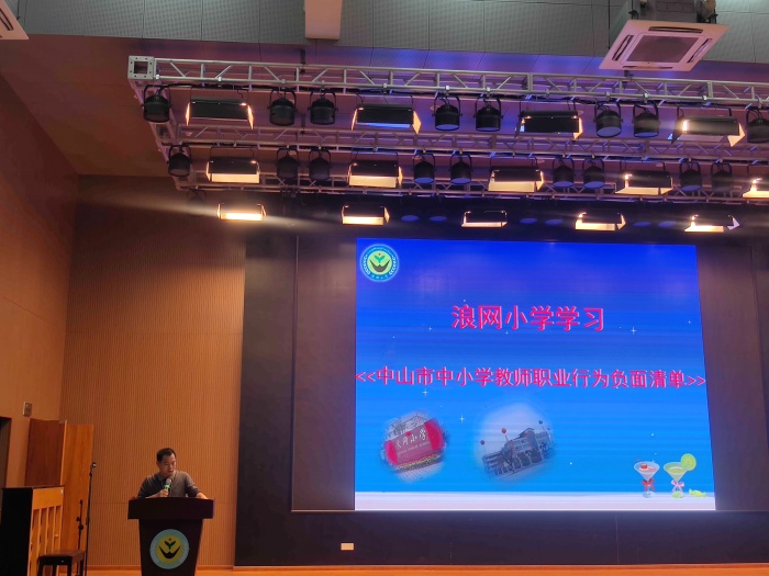 为了进一步加强师德师风建设,提高教职工的职业道德素养,强化教师文明从教、规范从教的职业意识,12月1日下午,浪网小学组织全体教师在阶梯室开展师德师风建设专题学习会。此次学习会由该校刘伟胜校长主讲,全体教师一同学习了新时代中小学教师职业行为十项准则和中山市中小学教师职业行为负面清单。