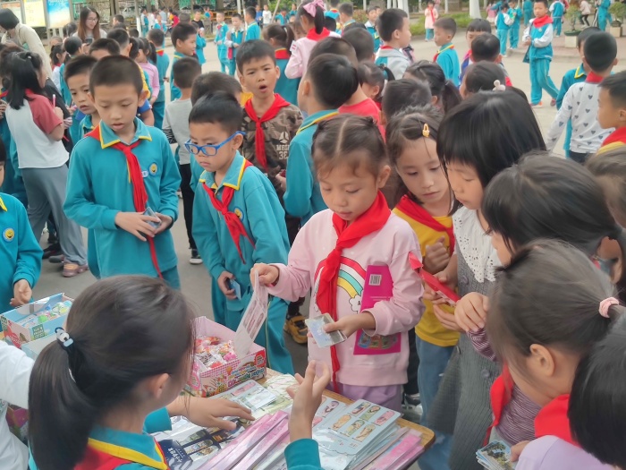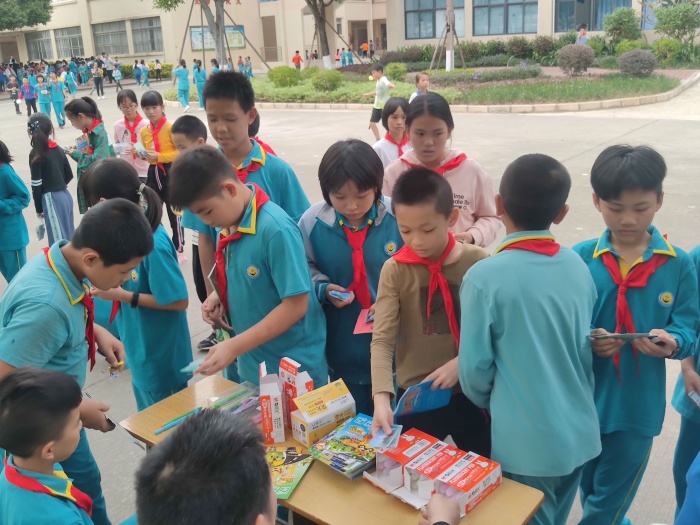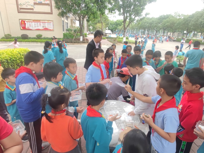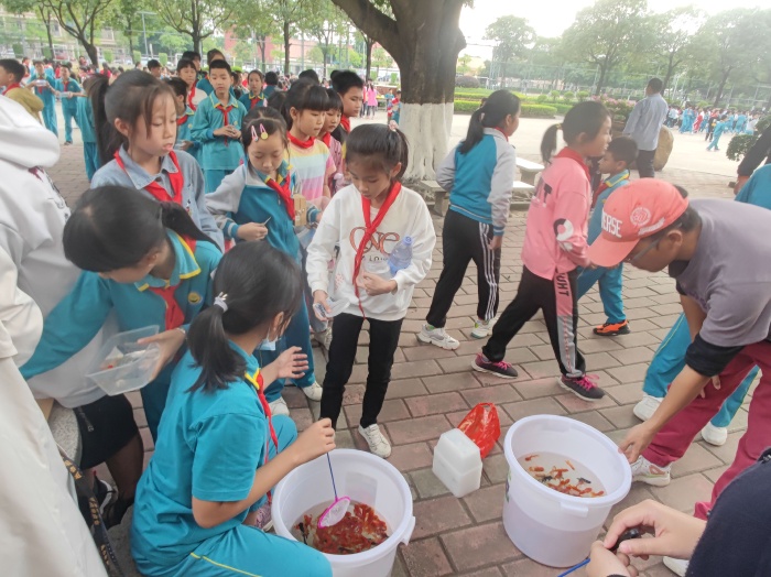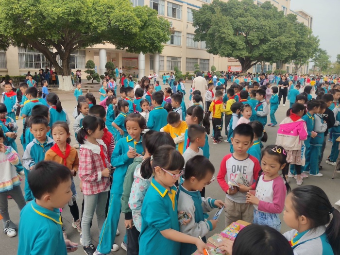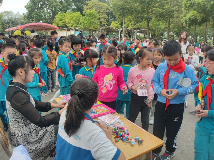 学生排着整齐的队伍来到兑换场地,低年级在升旗台前,中年级在教学楼前后座中间的空地上,高年级在综合楼前。整个兑换过程紧张、有序,师生们都积极参与此活动。在兑换现场,孩子们拿着通过自己努力获得的积分卡,在各个兑换区兑换到了心爱的小礼物,学生的脸上洋溢着开心的笑容。其中兑换乌龟、金鱼的摊位深受学生欢迎,排起长龙。