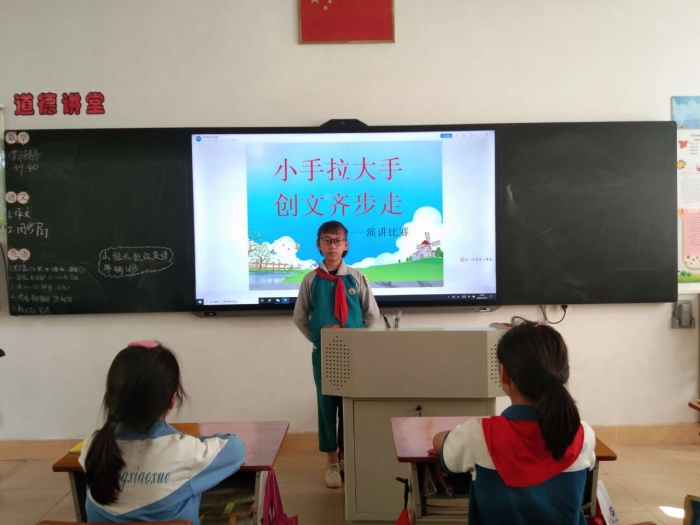 同时,学校多举措开展了创文主题实践活动。一是美化校园环境营造浓厚的创文氛围。刷新了校园内社会主义核心价值观、文明用语,同学们争相诵读,牢记于心,营造了浓浓的“创文”氛围。二是宣传文明知识。学校利用微信公众号、班级群等宣传阵地,推送文明城市创建知识,倡导家长与学生积极参与各类创建知识调查及文明知识的学习。三是召开文明礼仪教育主题队会。各班利用假前班队会,进行了仪表之礼、餐饮之礼、言谈之礼、待人之礼、行走之礼、观赏之礼、浏览之礼、仪式之礼等八礼教育。高年级全体学生在班主任老师的指导下积极参与“小手拉大手,创文齐步走”助力农村人居环境整治征文比赛、绘画比赛、演讲比赛等活动,坚持“小手拉大手”家校共育,做到创文创卫人人知晓、人人参与。