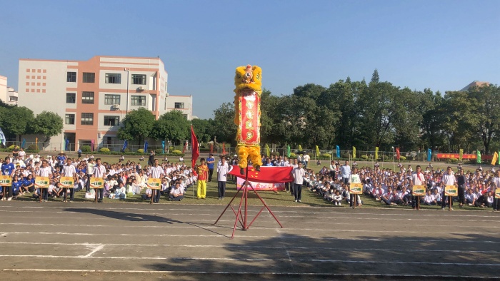 开幕式尾声,在一场精彩的舞狮表演之后,全体师生面向国旗,唱响国歌。邱慎明副校长为校运会致辞,希望同学们在校运会中发扬拼搏精神,为班级争光。伴随着校园四周依次响起的爆竹声,杨铨标校长慷慨激昂地宣布第二十五届校运会正式开始。