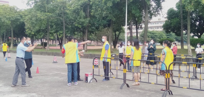 为了更好地应对可能产生人群密集的各项活动,使相关人员熟悉应急处置内容和流程,让开学后校园防疫、教学、生活等各项工作的开展更顺畅。根据上级要求,民众中学8月26日上午举行防疫期间应急演练活动。
