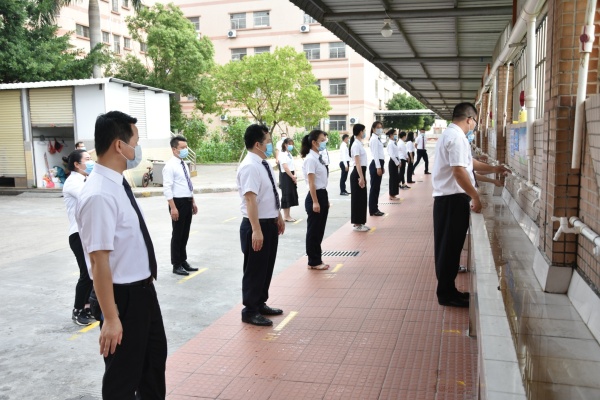 据了解,在本次演练开始前,锦标学校黄元感校长、分管安全卫生工作的陈德亮主任先后进行了发言及演练培训。黄校长强调,所有参演人员思想上要高度重视,严肃认真,从整体式体会掌握演练流程,认真领会演练的目的,明白自己的工作任务和参演角色、规定动作,保证参与排练预演,遵守演练时间安排,确保成效,为正式复学复课工作积累经验、奠定坚实基础。陈主任要求,所有参演人员要切实做到“六个到位”和“六个不准”。这既是本次演练的要求,也是学生复学复课后的一段时间内的行为规范,务必牢记并严格遵守。“六个到位”即:防护到位、消杀到位、通风到位、行为到位、监控到位、宣传到位;“六个不准”即:不准串位、不准串室、不准串楼、不准喧哗、不准外出、不准传谣。