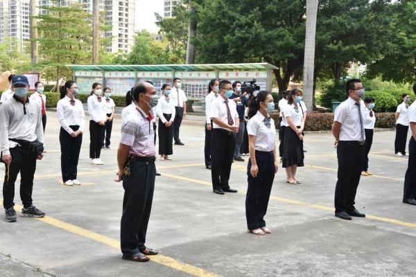 学校全体行政人员、办公室人员、初三全体科任教师、跟车老师、生活老师、校车驾驶员、食堂工作人员、保洁员等共81人参加了本次演练。学校还邀请了高晓颖(驻校医生)、吴镜丽(社区服务医生)、林小灵(卫生健康副校长)等医生来到现场观摩演练并进行专业指导和培训。
