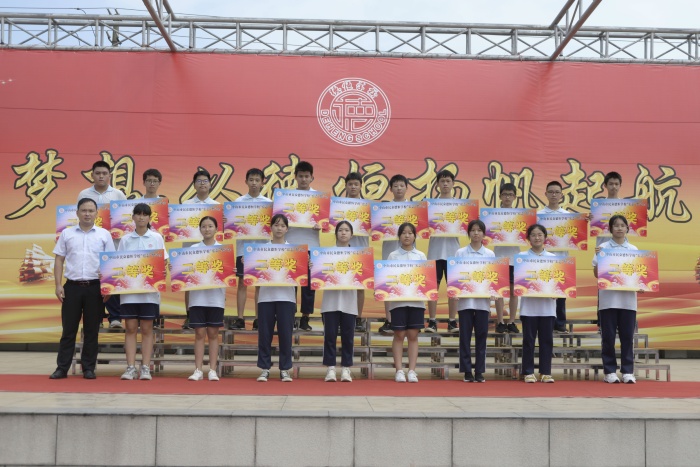 接着,颁奖环节,掌声雷动,执行董事曾海光、王盛刚校长、校办华主任、德育处杨主任、教务处邓主任和生活部高主任等领导分别上台为他们颁发奖金牌,并希望他们戒骄戒躁,再接再厉,继续取得好成绩。一幅幅肯定、鼓励的画面定格在舞台之上,获奖学子手持奖金牌,脸上洋溢着自信大方的笑容,展演着他们无悔的张扬的青春。