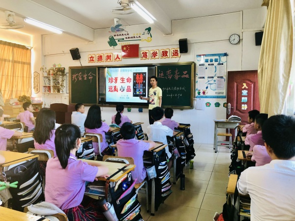 与此同时,各班还共同学习了相关的法律法规,增强学生们的法律意识,也使学生认识到吸毒和贩毒都属于违法犯罪活动,都会受到法律的严惩,让学生们自觉远离毒品和抵制毒品。班主任还鼓励孩子们“小手拉大手”,将禁毒宣传带到家里,带进社区,让家人和亲戚朋友都能认识到毒品的巨大危害。班会课最后,各班学生进行了禁毒宣誓,坚决与毒魔作斗争,珍爱生命,拒绝毒品。