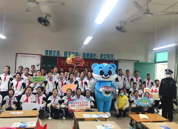 3月8日下午,民众镇“守住主阵地,拒毒做先锋”禁毒宣传进校园活动在浪网中学举行。本次活动是为深入贯彻落实习近平总书记关于禁毒工作重要批示指示精神,全面加强青少年毒品预防教育工作。民众镇禁毒办为本次活动主办单位,市向日葵社会工作服务中心及浪网中学为承办单位。