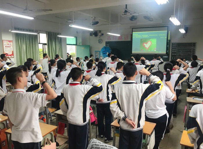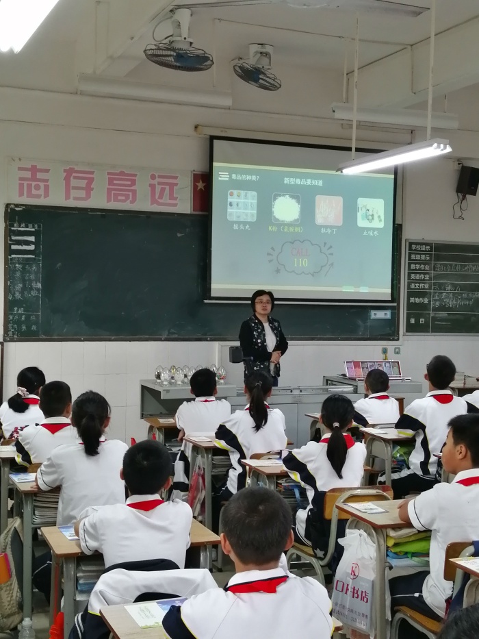 法制副校长欧警官为同学们带来了“禁毒知识知多D”抢答游戏,同学们均能根据禁毒课堂所学正确作答。游戏结束后,广东禁毒形象卡通代言人——“粤虎”,在同学们的欢呼声中进入课堂。班主任为同学们介绍了“粤虎”的由来及责任,号召同学们树立禁毒积极、正面的形象,努力提升我校禁毒宣传工作的传播力和影响力。最后,在“共创无毒青春、同享健康生活”的宣誓声中,浪中禁毒宣传活动画上了圆满的句号。