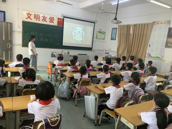随着社会的发展,科技的进步,电子产品已走进千家万户。为了让学生知道怎样正确对待网络,做到上网有益。中山市南朗旗风学校于7月7日下午开展全校《绿色、安全、文明上网》的主题班会教育活动。