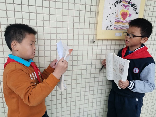 活动中,孩子们精神抖擞,用真挚饱满的情感和铿锵有力的语言,将《弟子规》《千字文》《论语》《中庸》《老子》《史记-资治通鉴》等经典国学诗文进行背诵考核。本次考核活动形式由高年级的“考官”考低年级的学生,中高年级则班级之间互考,各语文教师组织监考。各班校本课程《国学经典》的通过率均超过98%,还有很多孩子热爱国学,超前诵读学习国学经典诗文。孩子们声情并茂、朗朗上口的古诗文诵读得到了语文老师们的称赞,