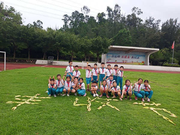 同学们互相配合,有的负责摘玉米,有的负责剥玉米,在劳动中感受种植带来的喜悦。摘完玉米后,有的班级把摘到的玉米摆放成“丰收节”“喜悦”等字样,在大操场上拍照留影。学校家委会也对本次活动大力支持,各家委分工合作,部分家委把玉米带回家煮熟,有的把玉米榨成玉米汁分给同学们,还有的同学自己学做玉米饼,校园内传递着丰收的喜悦。