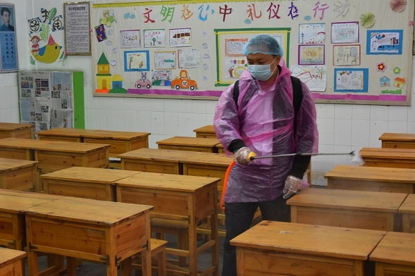 3月末,校园内绿树成荫,鸟语花香,窗明几静,老师们在等待着孩子们的回归。