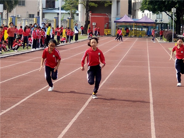 跳远、100米、200米、400米、800决赛、男女混合接力赛……运动场上小小运动员们英姿飒爽,奋力拼搏,竭尽全力,赛出了水平,赛出了风采,欢呼喝彩的加油声更是一波接着一波。在比赛中,裁判老师们顶着炽烈的阳光,专心致志地计时,校准,减少误差,公平公正。广播中时常传来捷报,振奋人心。最后的接力比赛,更是把现场气氛推向高潮,经过激烈的角逐,运动会在欢呼声中落下了帷幕。