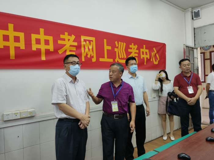 下午,南头镇党委书记徐宁军、南头镇镇长蓝海斌和镇党委委员薛焯明一行莅临学校,在南头镇文体教育局吴永高局长、教指中心谢桂华主任和卢新泉校长的陪同下巡查考试的各项组织工作。徐书记一行对考场进行了实地巡视,为了不打扰考生奋笔疾书,徐书记一行轻步慢行。确定考场一切顺利后,徐书记一行来到监控室,通过监控大屏幕,再次认真查看考生考试、考场秩序、监考情况等。紧接着,徐书记到达考务室了解南头镇初级中学考点与中山市考试指挥中心的视频连线情况,薛焯明委员向徐书记一行汇报了中山市徐小莉副市长对中考工作提出的要求:一是防疫措施要到位;二是安全工作要到位;三是纪律要落实到位;四是关心要到位;五是保障工作要到位。