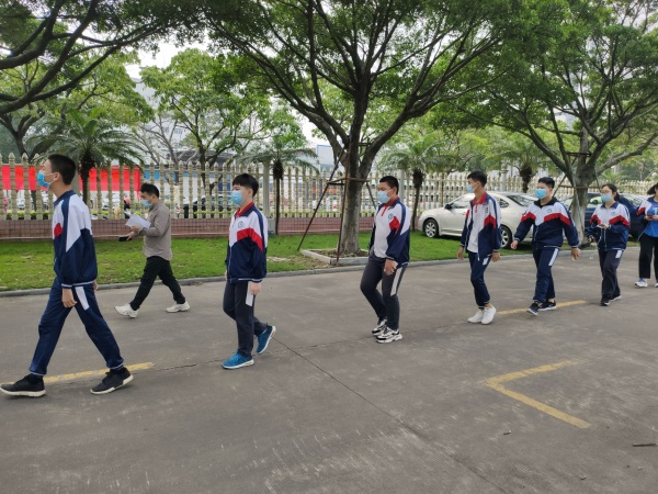 第一批次完成后,马上组织第二批次的住宿生测量体温,进入校门,直达宿舍放行李后,在自己的床铺上等候广播通知,错峰下楼,保持间隔一米以上,由老师带队到检测点检测。检测完成后,要求学生联系在校门外等候的家长,立即离开学校。