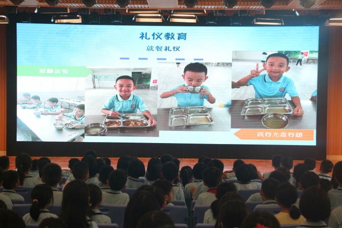 为了发挥老师的引领作用,提高学生的文明礼仪和安全意识,让学生学会规范自己的行为,增强自我保护和应急能力,近日,南头三鑫学校全体学生齐聚报告厅,李霞老师为大家带来了一节生动的课——《鑫生活第一课》,让大家受益匪浅。