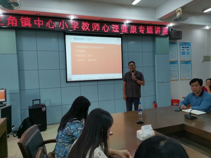 积极而富有活力的状态不仅能提高教师的幸福感和获得感,同时更能使教师积极缓解因复杂的教学和班级管理工作带来工作压力,提高工作效率,为了进一步帮助学校教师全面了解自己,提高应对压力的能力,加强教师对心理健康的理解,谈话技巧的掌握,27号下午,中山市三角镇中心小学特邀国家认证心理咨询师吴松科为教师开展心理健康培训讲座,全体教师参与了本次培训。